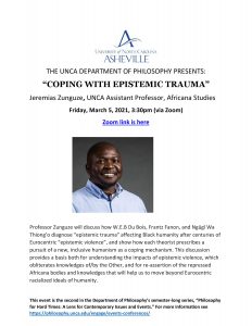 This presentation discusses how W.E.B Du Bois, Frantz Fanon, and Ngūgī Wa Thiong’o diagnose “epistemic trauma” affecting Black humanity after centuries of Eurocentric “epistemic violence.” Epistemic violence, according to Gayatri Spivak, is an obliteration of knowledge of the Other by dominant ideologies. By “epistemic trauma” I mean the psychic consequences of epistemic violence, in which dominant language and systems of knowing continue to fail to properly represent an inclusive humanism or a value system that prioritizes the welfare, worth, and dignity of specific groups of human beings, throwing them into an existential downward spiral. W.E.B Du Bois, for instance, diagnoses a “double consciousness” affecting African-Americans, reproduced by the “color line,” while prescribing the praxis of “spiritual striving” and a concrete meaning of humanism as a restorative mechanism. Fanon identifies “violence” as a condition to which the colonized are reduced, prescribing “political decolonization” and “epistemic decolonization” as acts that trigger a “psycho-effective equilibrium.” Wa Thiong’o calls for “decolonizing the mind” by reclaiming repressed indigenous languages as a way of repairing the “mental colonization” affecting representation, particularly, of African consciousness, which predominantly continues to be represented through European languages. Du Bois, Fanon, and Wa Thiong’o envision a new humanism founded on decolonization or disavowal of harmful effects of colonialism and assertion of repressed African bodies, knowledges, and systems of knowing; thus, moving beyond Eurocentric racialized ideals of humanity.